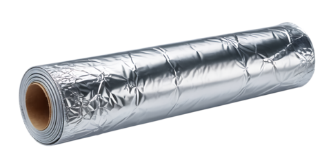 Roll of aluminum foil isolated on white background