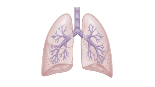 Human lungs anatomy PNG isolated on transparent background, detailed medical diagram of respiratory system for healthcare and education