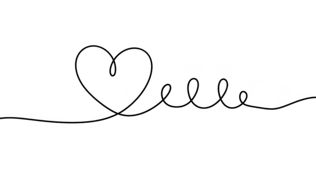 Abstract continuous line heart outline drawing isolated on white a transparent background