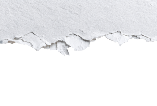 Ripped white paper against a black background.  A section of off-white paper with uneven, jagged edges, torn from the main sheet, sits above a solid black expanse.  Texture is visible on the paper