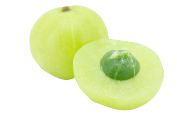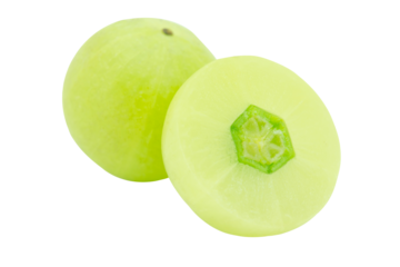 slice Indian gooseberry, amla green fruits isolated on white background. with clipping path.