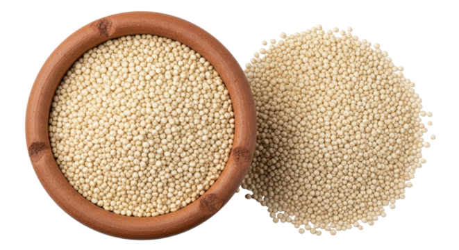 A top-down view of a circular mound of tiny, raw, brown seeds.