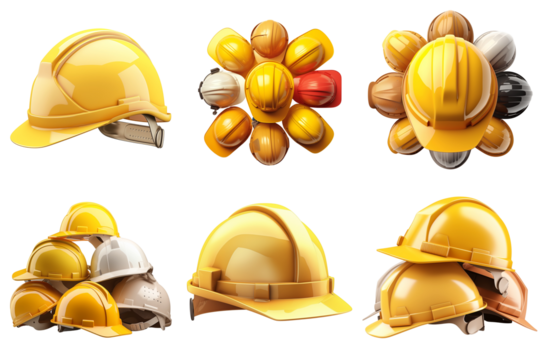 set of yellow construction helmet, he yellow construction helmet looks amazingly illuminated by realistic light and shadows, A yellow construction helmet, construction indust, on a transparent backgro