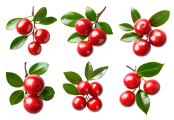 Set of red guava berries or camu camu with green leaves isolated on white background. Concept of healthy food