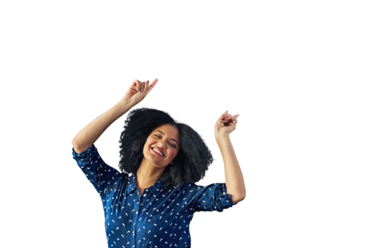 Portrait, smile and happy woman point at promotion information, commercial promo or discount deal. Advertising logo, branding gesture and female ambassador isolated on a transparent, png background