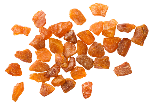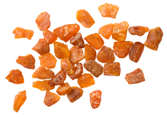 Crushed amber isolated on white background, top view.