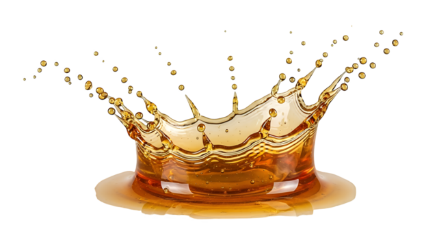Golden liquid splash, honey or syrup droplet isolated on Transparent Background