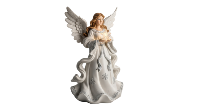 Elegant angel sculpture displayed in home decor captivating design indoor ambience peaceful vibe. Isolated on transparent background, png.