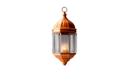 Elegant copper lantern featuring ornate carvings and glowing candle light creating a festive and spiritual ambiance for decorative celebrations and holiday displays