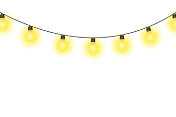 Decorative yellow string lights with warm glowing bulbs arranged in a gentle curve, perfect for festive occasions, celebrations, and ambient home decor.