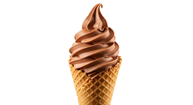 Delicious Soft Serve Chocolate Ice Cream Cone on a White Background