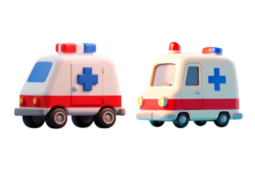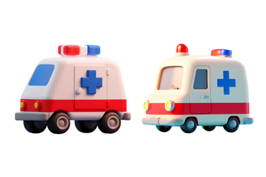 3D Cartoon ambulance vans emergency medical services rescue vehicles isolated on transparent background