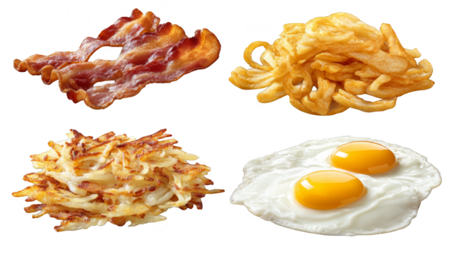 Delicious crispy bacon and fried eggs with melted cheese, a classic breakfast indulgence.