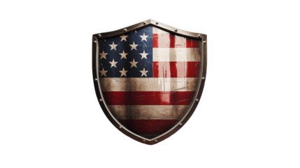 A bold graphic featuring the text “America First” with the U.S. flag motif integrated into the shape of the United States map, isolated on a transparent PNG background.