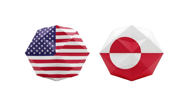 A pair of umbrellas with the American flag and South Korean flag designs displayed against a black background on transparent background