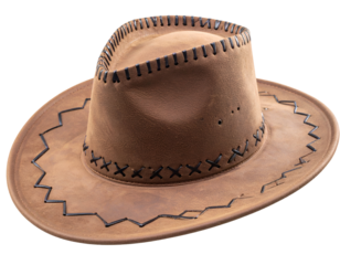 Cowboy Hat with Western Style and Weathered Brown Leather PNG isolated Transparent White Background Photo Image Full hd 4k Download