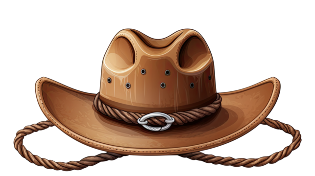 Vintage brown leather cowboy hat isolated on transparent background, perfect for western fashion, country style, rodeo, costume design, and rustic decor projects