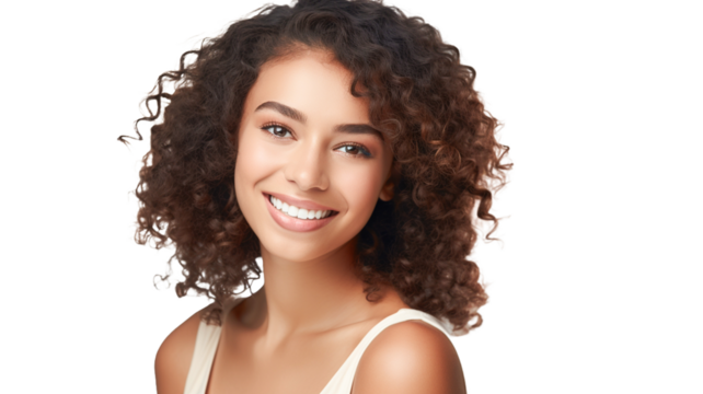 Portrait of a woman with curly hair on a transparent isolated background