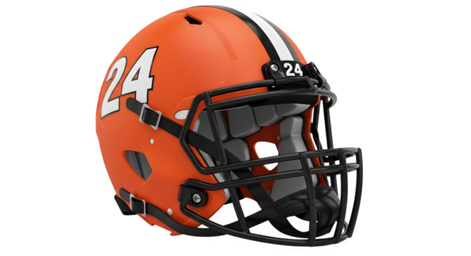 American football helmet number twenty four orange and white detailed view isolated on transparent background