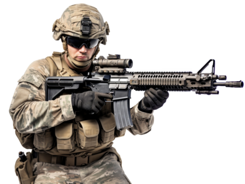 a American military army special force soldier with camouflage helmet and a rifle gun