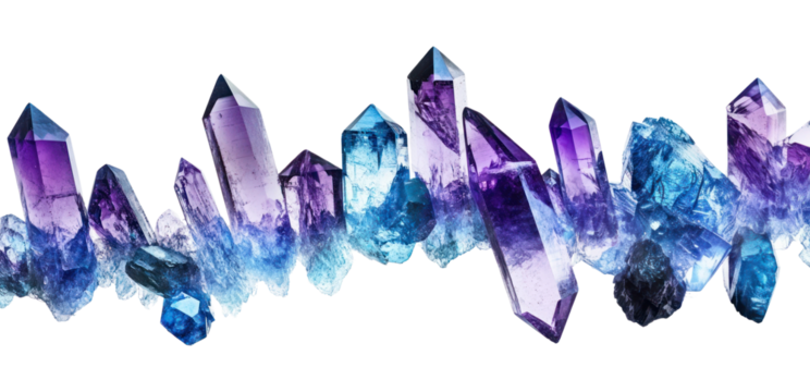 PNG Purple blue crystals gemstones amethyst minerals.