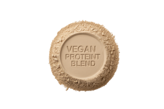 Close up of a scoop of whey protein powder, isolated on transparent background