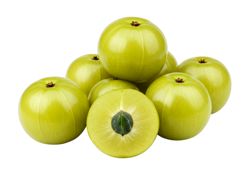 Fresh Indian gooseberries on transparent png ( Image from camera)