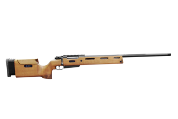 Brass rifle bullet isolated, ammunition for hunting and target practice on a clean backdrop, cartridge with copper jacketed projectile