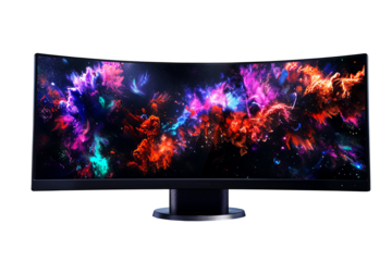 Mdern curved large big LCD LED Tv monitor Amoled display bright colorful display isolated on a transparent background product photography