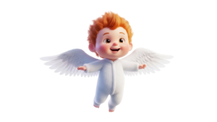 Adorable baby angel PNG isolated on transparent background, cute cartoon character with wings for holiday and greeting card design