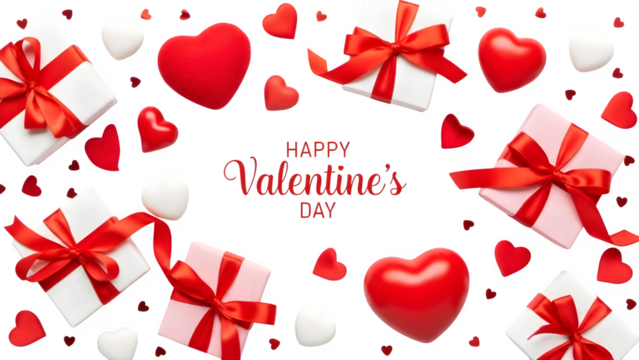 Happy valentines day heart shaped card with pink hearts on transparent background