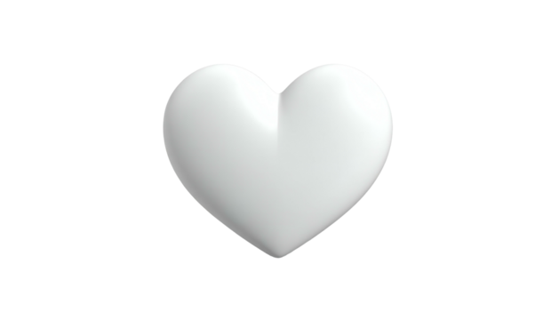 A smooth, white heart with a subtle gradient on a pure black background