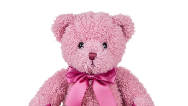 Pink Teddy Bear with Ribbon on a Transparent PNG