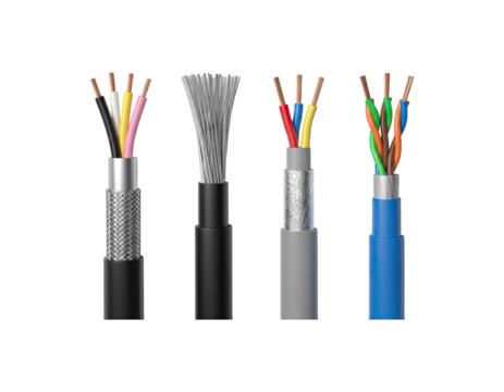 Variety of Vibrant Electric Cables and Wires with Multicolored Insulation and PVC Coating on Transparent Background