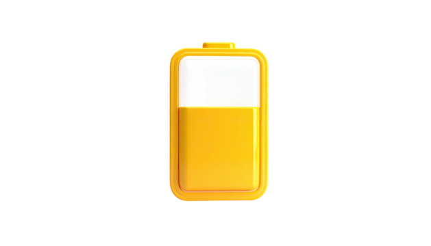 Half-charged golden battery icon on black background