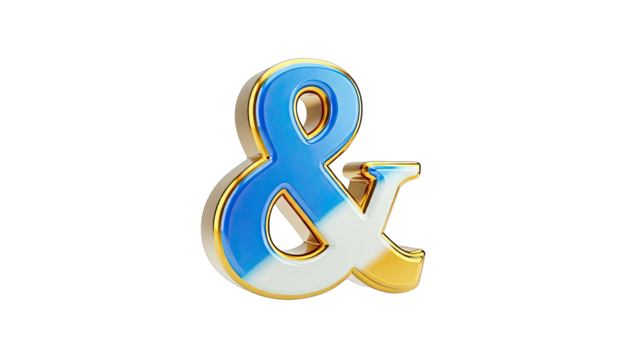 Colorful ampersand symbol with pink hearts and golden crown on transparent background