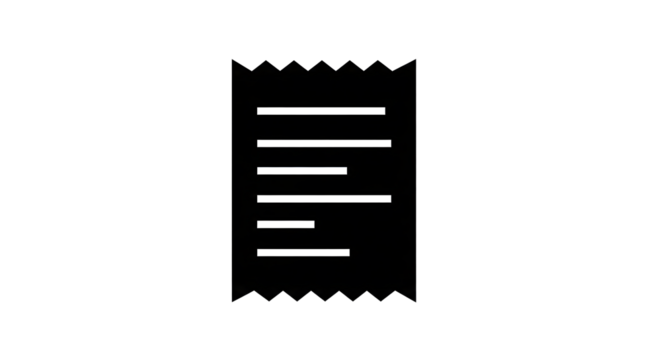 Black and white illustration of a receipt or ticket with horizontal lines on a plain background with design and icon and symbol and graphic