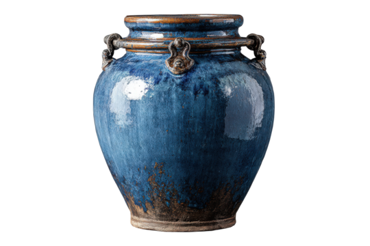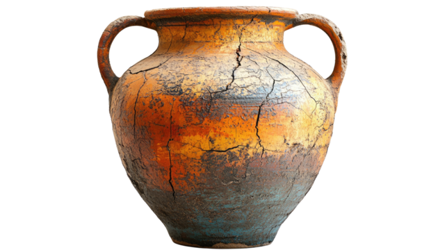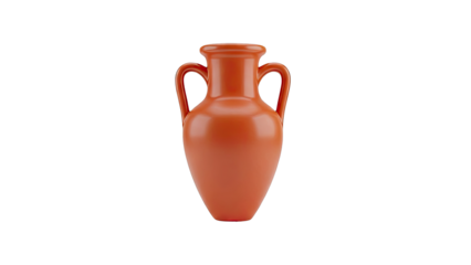 Ancient clay amphora vase standing on a white background, showcasing its classic design and historical significance