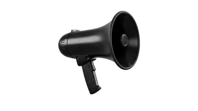 Black megaphone on white background tool for amplifying sound simple yet effective