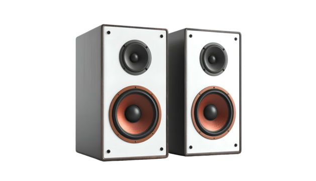 Stylized speaker cones with sound waves on transparent background