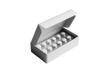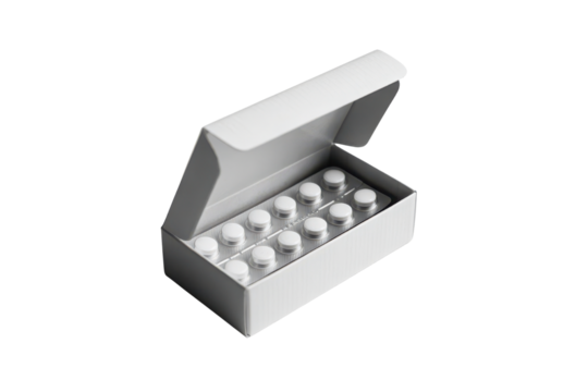 Medical vials in box isolated on transparent background
