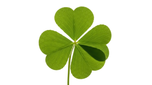 Green four leaf clover isolated PNG on transparent background, lucky charm for St Patrick s Day and good fortune
