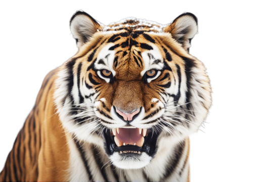 growling tiger siberian panthera grow tigris isolate cat wildlife nature felino animal mammal anger front angry safari snow winter amur striped predator wild stripes tigress wildcat carnivore big