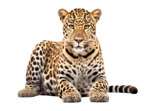 A fullbody side view of an Amur leopard walking isolated on a white background with a clipping path captured with a wideangle lens a stock photo taken with a