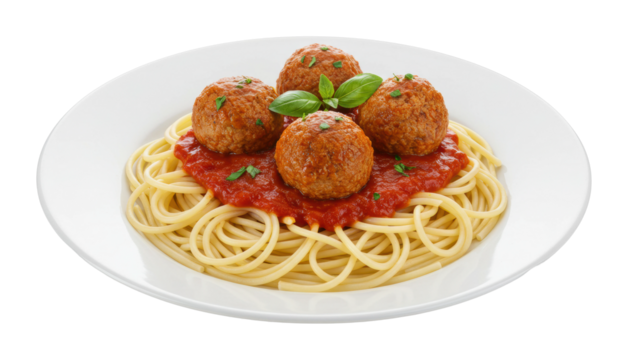 Delicious spaghetti and meatballs italian cuisine food bright culinary delight. Cut out PNG