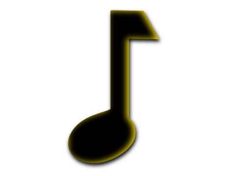 Minimal black musical note symbol glowing with golden outline on transparent background.