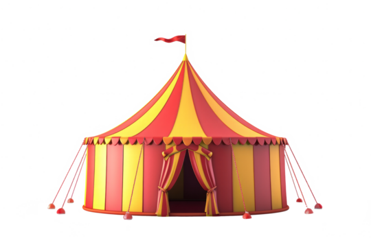 Circus tent isolated on transparent background, Striped dome of traveling circus in amusement park
