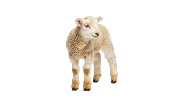 Adorable lamb standing on a white background, perfect for spring and Easter themes