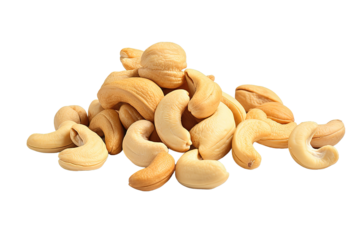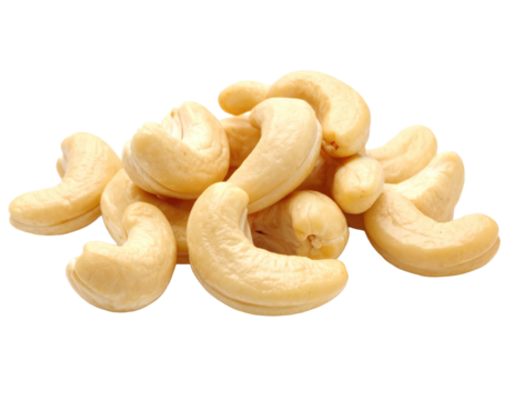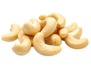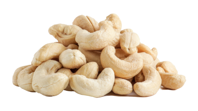 Pile of cashew nuts PNG isolated on transparent background, healthy snack food rich in protein and minerals