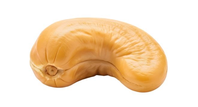 Close up of a single cashew nut with detailed texture isolated on transparent background